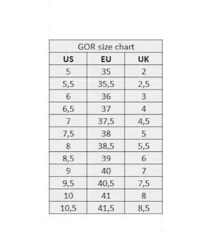 EU 36 US 6.0 UK 3.0 | 23.5 cm EU 37 US 6.5 UK 4.0 | 24.5 cm EU 38 US 7.5 UK 5.0 | 25.0 cm EU 39 US 8.5 UK 6.0 | 25.5 cm EU 40 US 9.0 UK 7.0 | 26.0 cm EU 41 US 10 UK 8.0 | 26.5 cm
